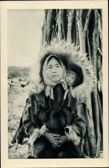 Ak Alaska USA, Eskimos am Polarkreis, Mutter mit Kind