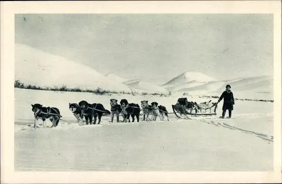 Ak Alaska USA, Wagons lits de l'Arctique, Hundeschlitten