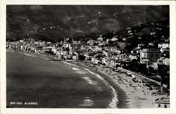 Ak Alassio Liguria, Gesamtansicht, Strand