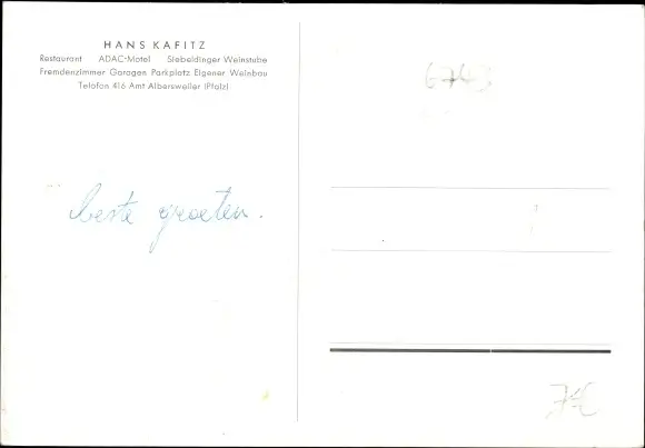 Ak Albersweiler in der Pfalz, Hans Kafitz, Restaurant, Motel, Weinstube, Außenansicht