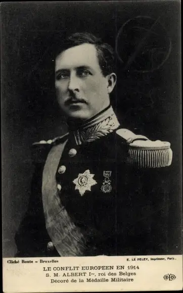 Ak Albert I., Roi des Belges, Decore de la Medaille Militaire, Portrait