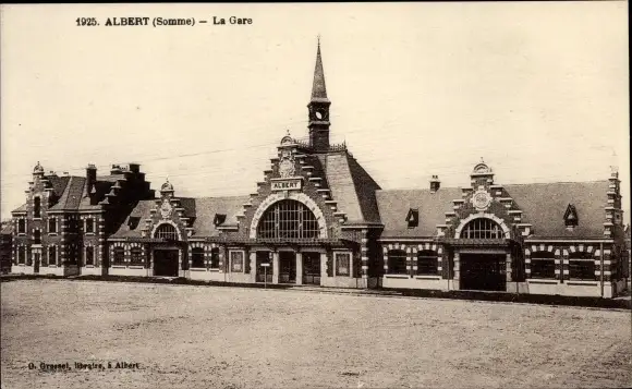 Ak Albert Somme, La Gare, Blick auf den Bahnhof, Straßenseite