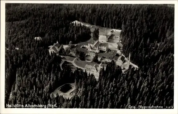 Ak Albertsberg Auerbach im Vogtland, Fliegeraufnahme, Heilstätte