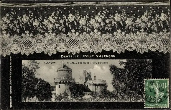 Ak Alencon Orne, Chateau des Ducs a Vol d'Oiseau, Serviette
