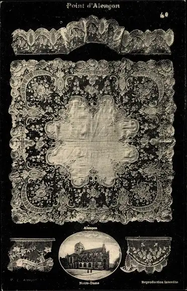 Ak Alencon Orne, Point d'Alencon, Spitze, Eglise Notre Dame