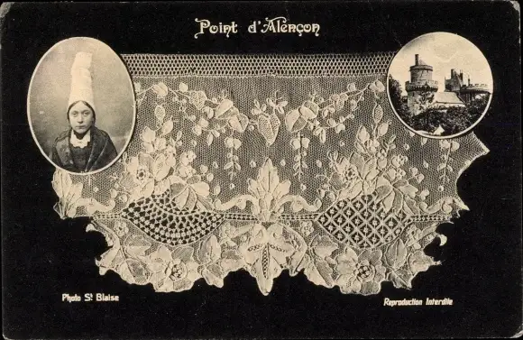 Ak Alencon Orne, Point d'Alencon, Spitze, Schloss, Tracht