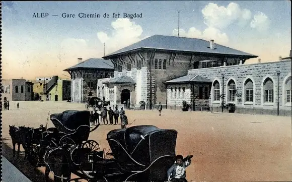 Ak Aleppo Syrien, Bahnhof Bagdad, Kutschen