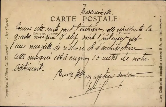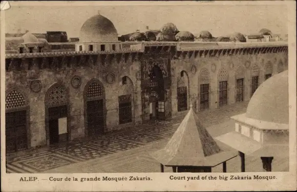 Ak Aleppo Syrien, Cour de la grande Mosquée Zakaria, Teilansicht der Moschee
