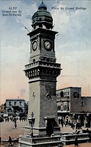 Ak Aleppo Syrien, Grand rue de Bab El Faradj, Grand Horloge