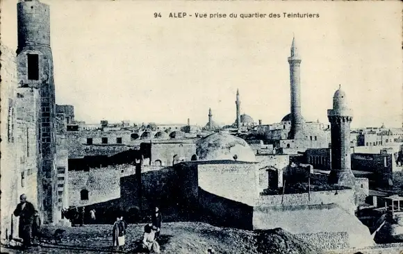 Ak Aleppo Syrien, Vue prise du quartier des Teinturiers