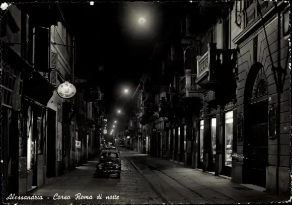 Ak Alessandria Piemonte, Corso Roma di notte, Auto