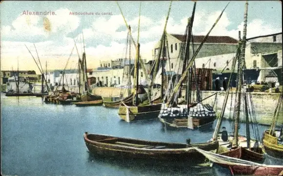 Ak Alexandria Ägypten, Ambouchure du canal, Boote