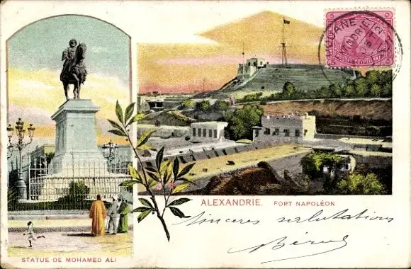 Ak Alexandria Ägypten, Fort Napoleon, Statue von Mohamed Ali