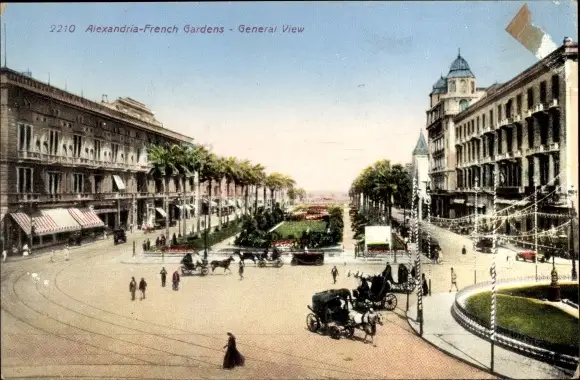 Ak Alexandria Ägypten, French Garden, General View