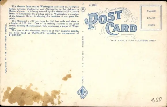 Ak Alexandria Virginia USA, George Washington Masonic National Memorial