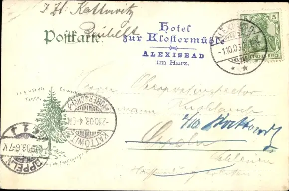 Zustand, siehe Scan, gelaufen, 1903 - ca 14 cm X 9 cm