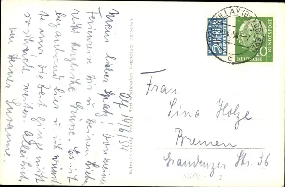 Zustand, siehe Scan, gelaufen, 1954 - ca 14 cm X 9 cm