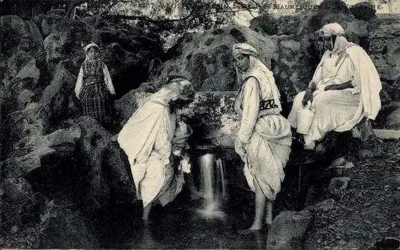 Ak Algerien, Araberinnen an einer Wasserquelle, Arabische Tracht