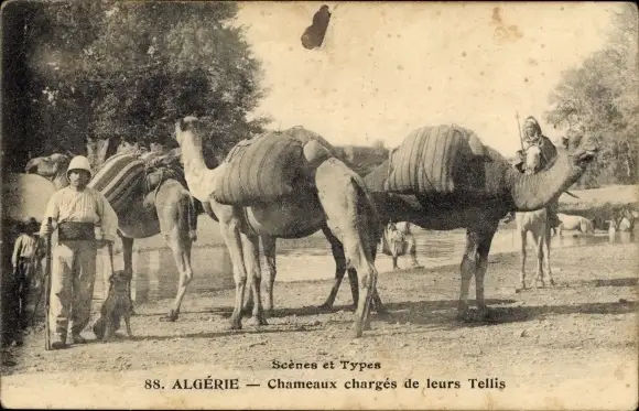 Ak Algerien, Kamele beladen mit ihren Tellis