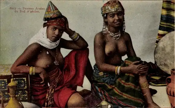 Ak Algerien, arabische Frauen, barbusig