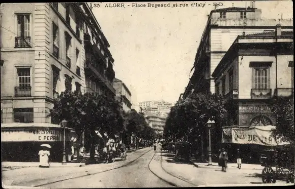 Ak Algier Alger Algerien, Place Bugeaud, Rue d'Isly