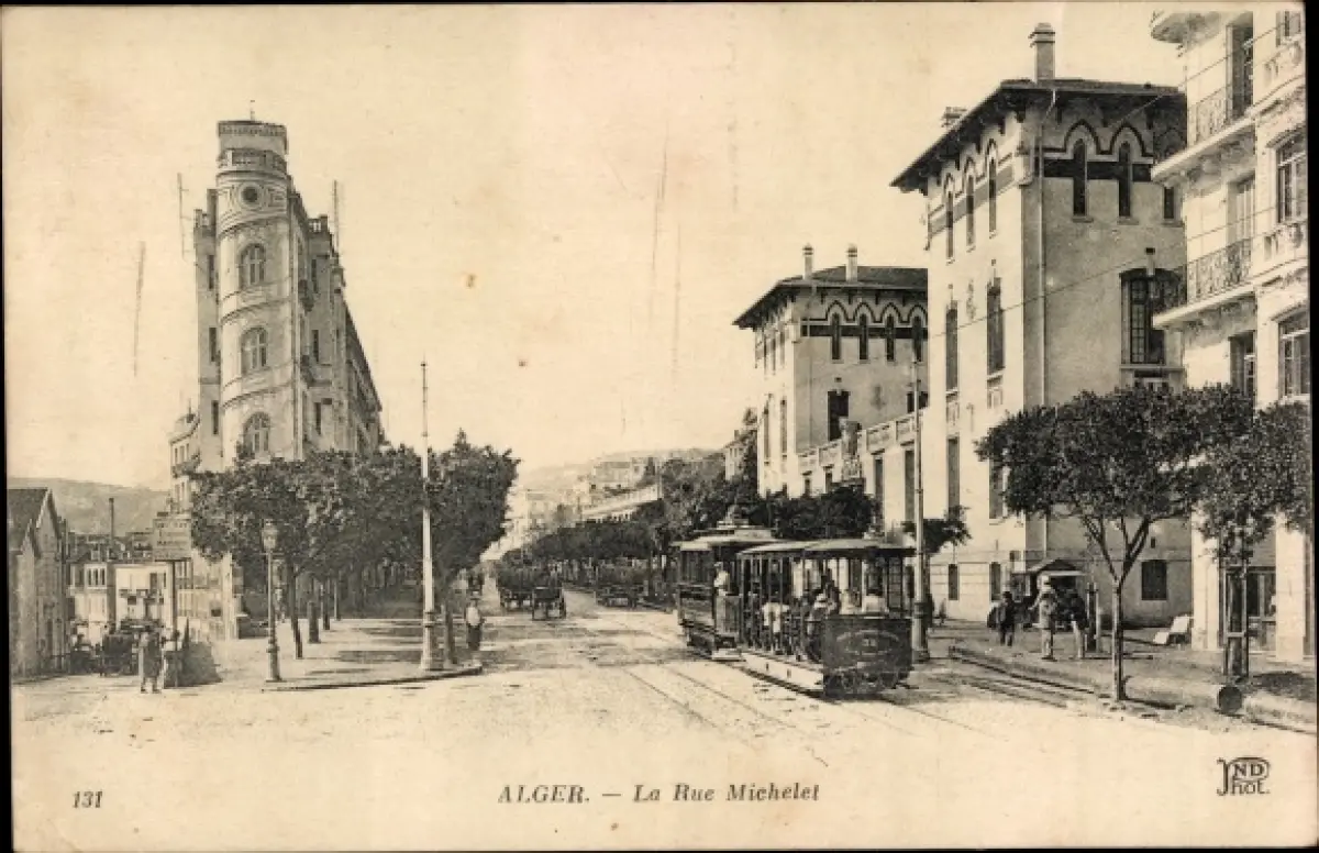 Ak Algier Alger Algerien, Rue Michelet, Straßenbahn