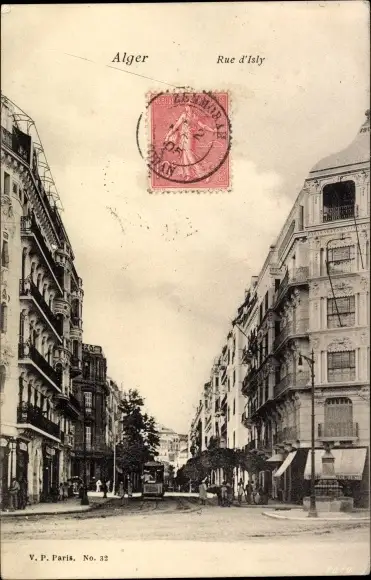 Ak Algier Alger Algerien, Rue d'Isly, Straßenbahn