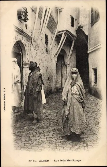 Ak Algier Alger Algerien, Rue de la Mer-Rouge, Einheimische