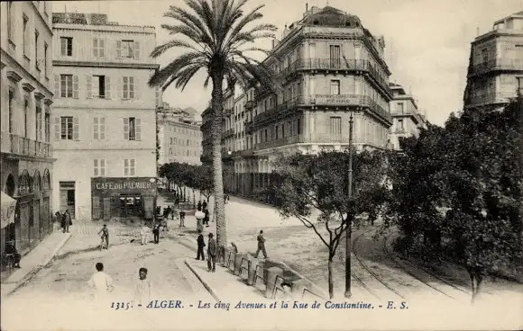 Ak Algier Alger Algerien, Straßenpartie, Café
