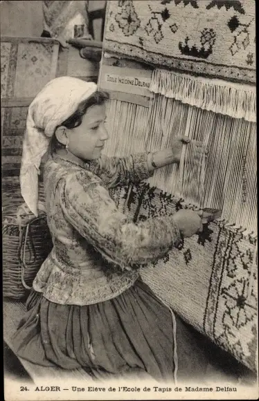 Ak Algier Alger Algerien, Une Eléve de l'École de Tapis de Madame Delfau