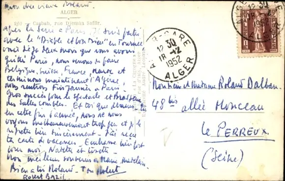 Zustand, siehe Scan, gelaufen, 1952 - ca 9 cm X 14 cm