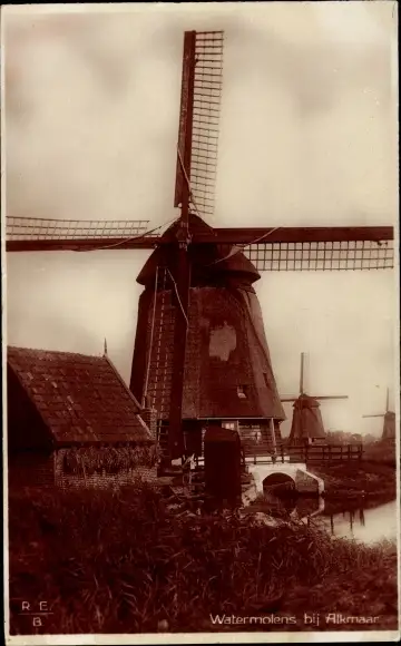 Ak Alkmaar Nordholland Niederlande, Watermolens, Windmühlen