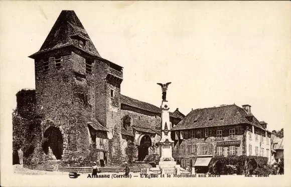 Ak Allassac Corrèze, Kirche, Kriegerdenkmal