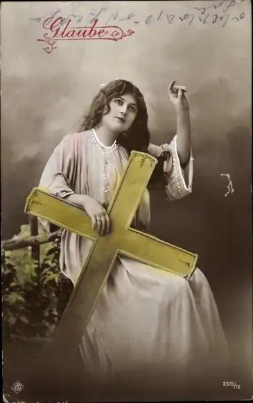 Ak Allegorie, Glaube, Frau mit Kreuz
