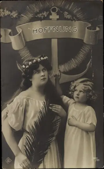 Ak Allegorie Hoffnung, Frau mit Palmzweig und Kind