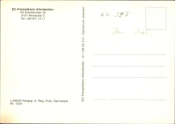 Ak Allertshofen Modautal im Odenwald, EC-Freizentrum, Alt Allertshofen 52, Fliegeraufnahme