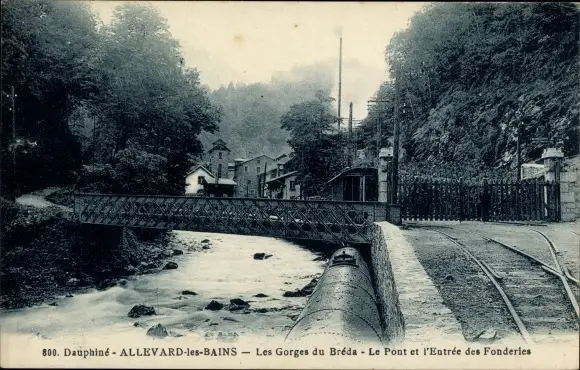 Ak Allevard les Bains Isère, Les Gorges du Breda, Entrée des Fonderies