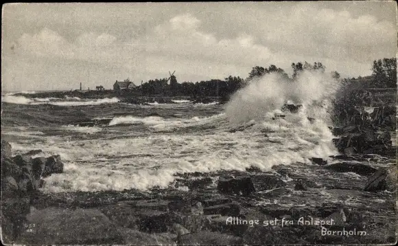 Ak Allinge Sandvig Bornholm Dänemark, set fra Anlaepet, Küste, Wellen