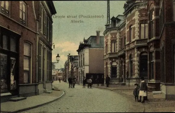 Ak Almelo Overijssel Niederlande, Groote straat, Postkantoor