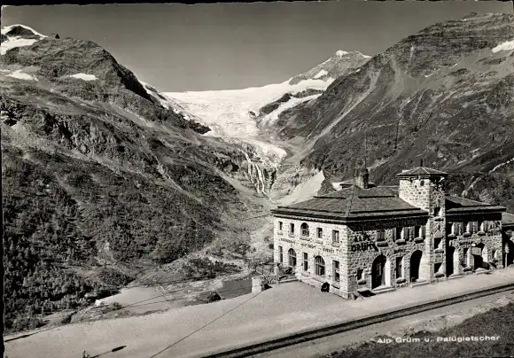 Ak Alp Grüm Kt. Graubünden, Bahnhof, Panorama, Palügletscher