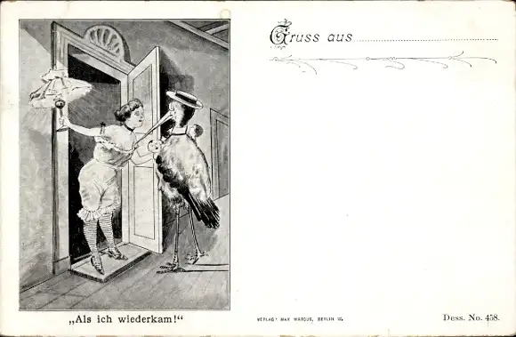 Ak Als ich wiederkam, Storch mit Baby, Frau