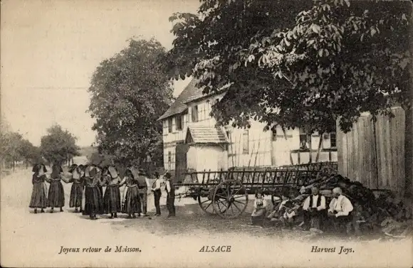 Ak Alsace Elsass Frankreich, Joyeux retour de Moisson