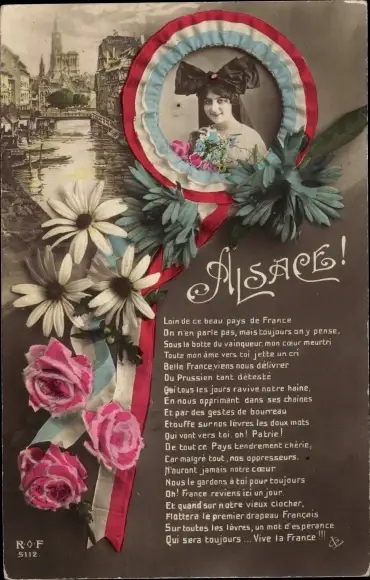 Ak Alsace, Frau in Tracht, Stadtansicht, Vive la France