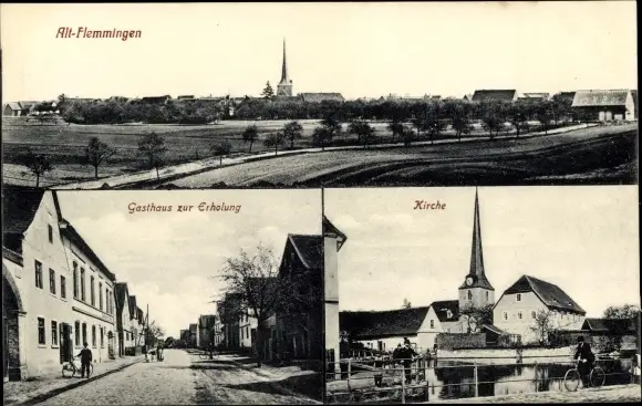 Ak Alt Flemmingen Naumburg an der Saale, Gasthaus zur Erholung, Kirche