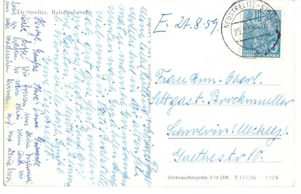 Ak Alt Strelitz Bahnhofstraße 1959 Postamt Neustrelitz