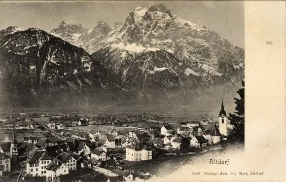 Ak Altdorf Kt. Uri Schweiz, Panorama der Ortschaft, Alpenkamm