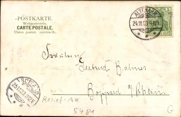 Zustand, siehe Scan, gelaufen, 1903 - ca 14 cm X 9 cm