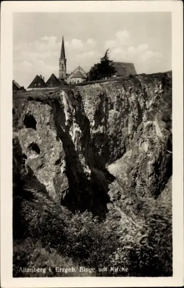 Ak Altenberg Erzgebirge, Binge mit Kirche