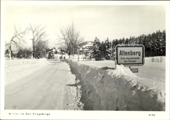 Ak Altenberg Erzgebirge, vom Schnee geräumte Straße