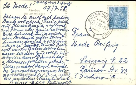 Zustand, siehe Scan, gelaufen, 1958 - ca 9 cm X 14 cm